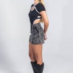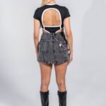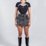Body negro en rib 100% algodón con logo en serigrafía, diseño con aberturas frontales y posteriores y vivos contrastados en color blanco, ofreciendo una silueta definida y un ajuste impecable.