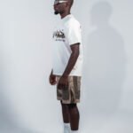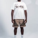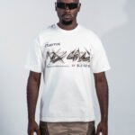camiseta ivory de corte relajado con gráfico metálico futurista al frente, confeccionada en 100% algodón peruano de 260 g y cuello en rib, ofreciendo una suavidad superior y caída impecable.